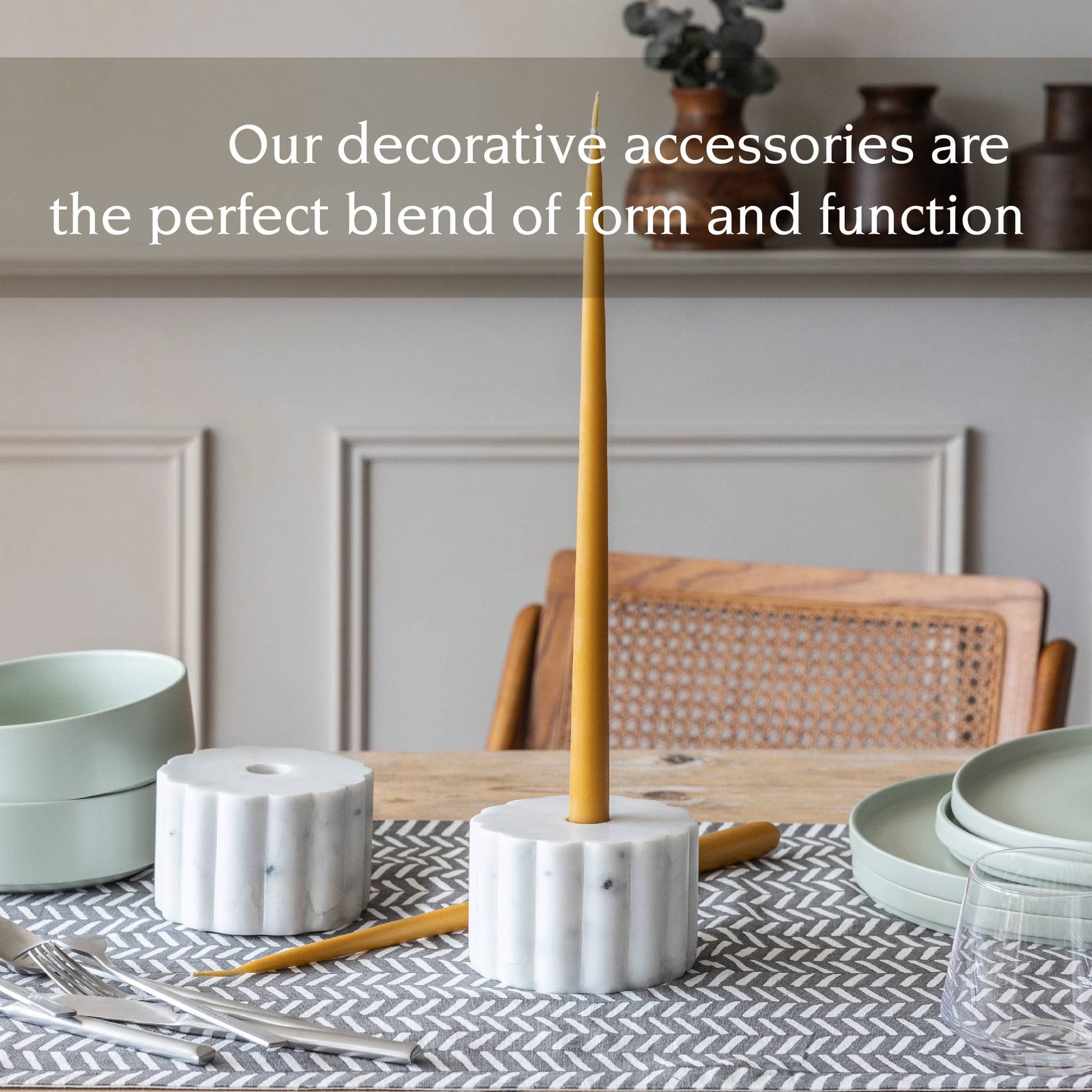 These marble taper candle holders bring a touch of timeless elegance to any room, whether styled on a dining table, mantel, or bookshelf. Their sculptural ribbed design adds texture and sophistication, effortlessly blending with modern, classic, or minimalist decor.