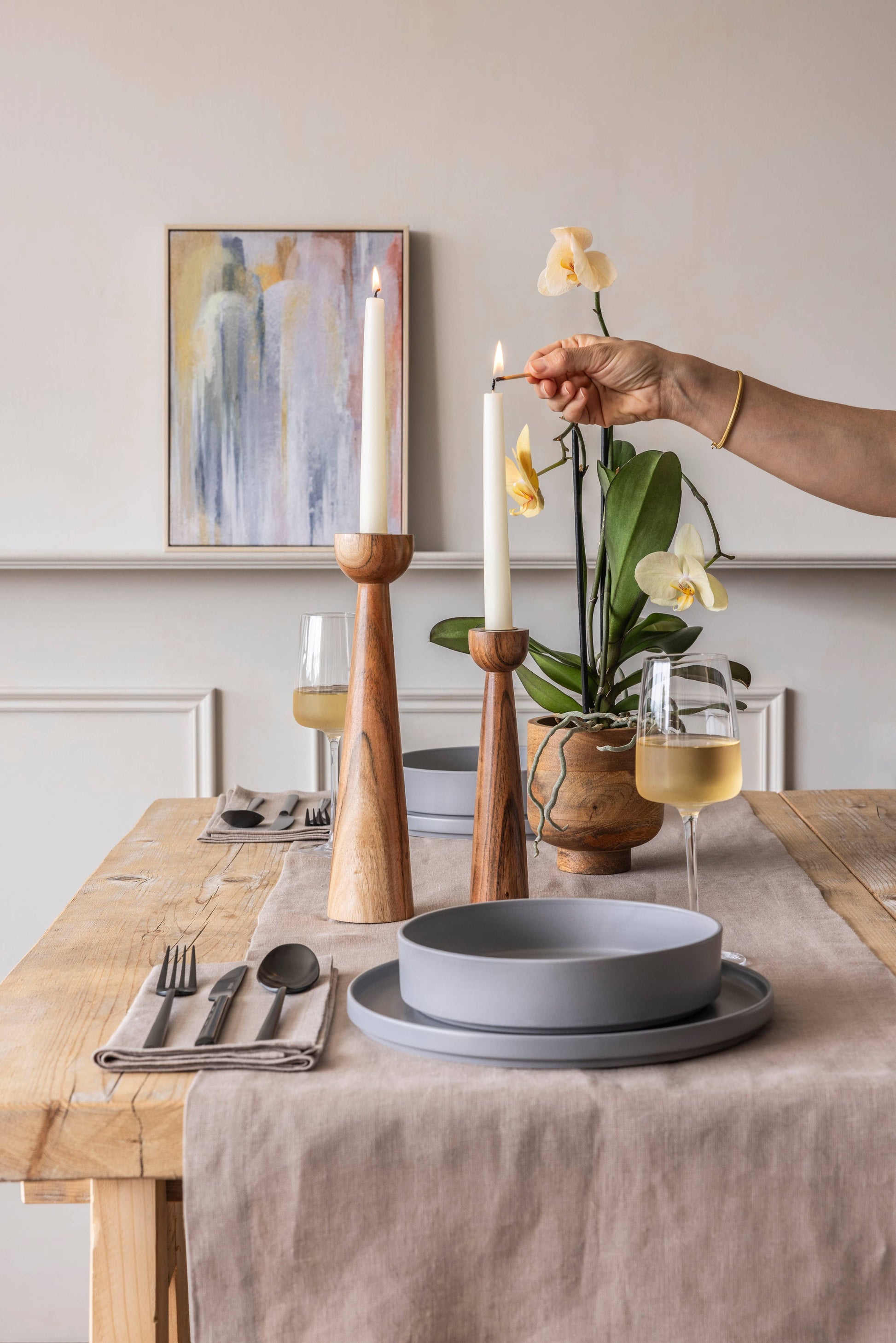 Crafted with care, each candlestick holder is made from 98% acacia wood and 2% iron, blending natural beauty with durable construction. The subtle wood grain variations make every piece uniquely beautiful, offering character and style that stand out.